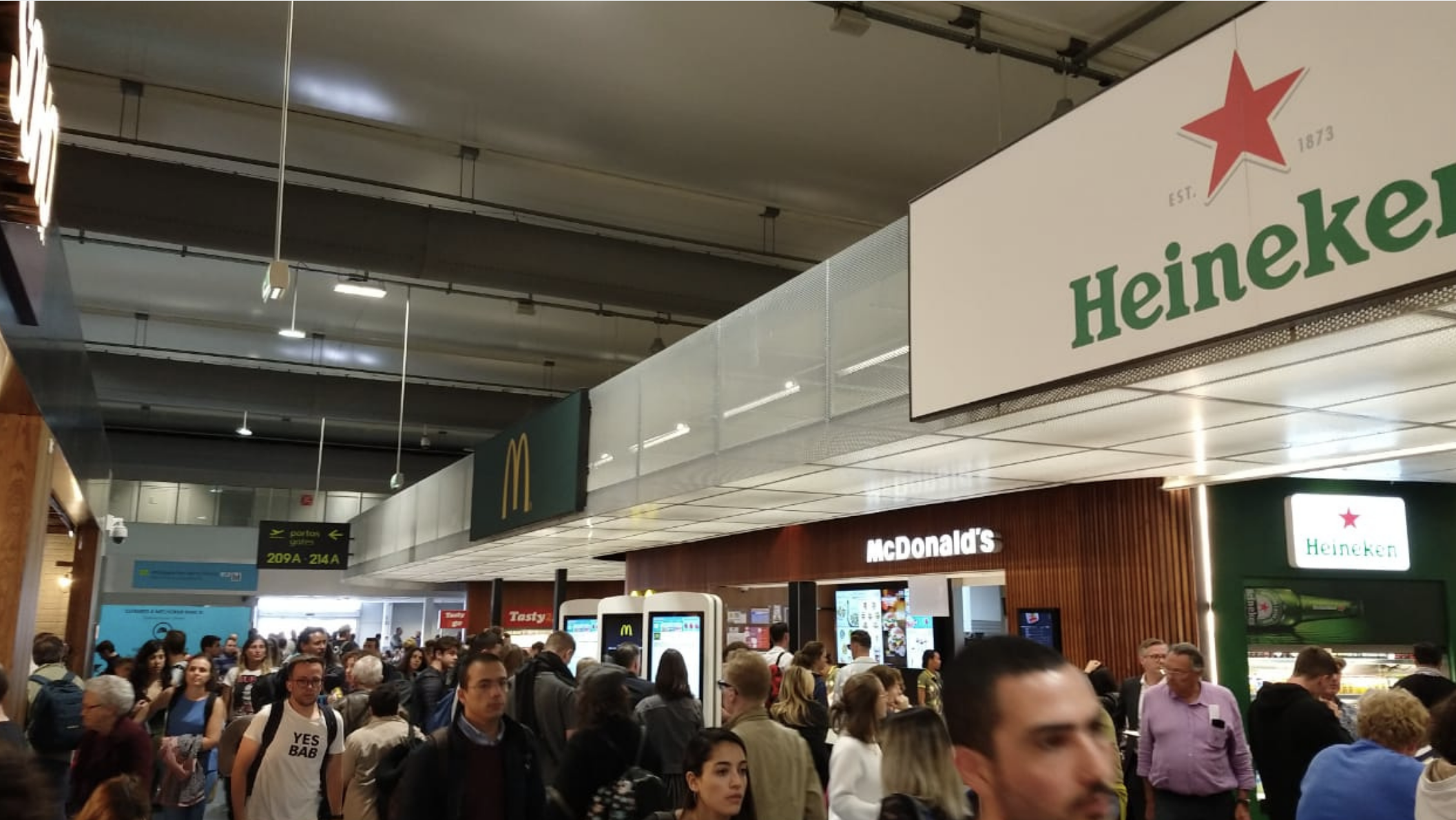Es una gran sala de espera donde hay algunas tiendas y un espacio de restaurantes donde comprar comida que después podremos subir al avión.